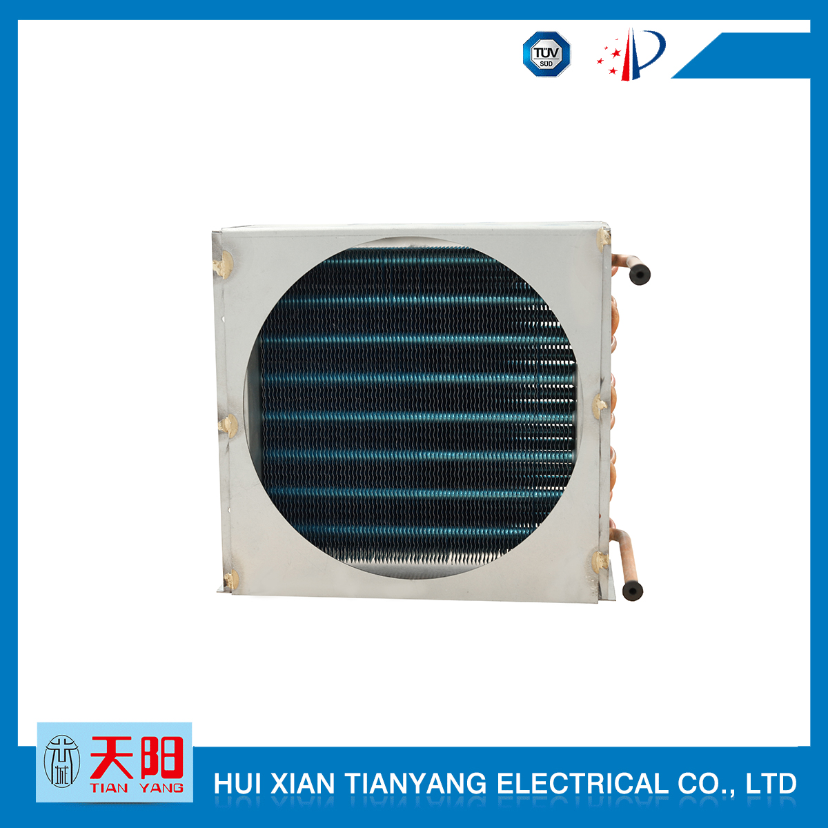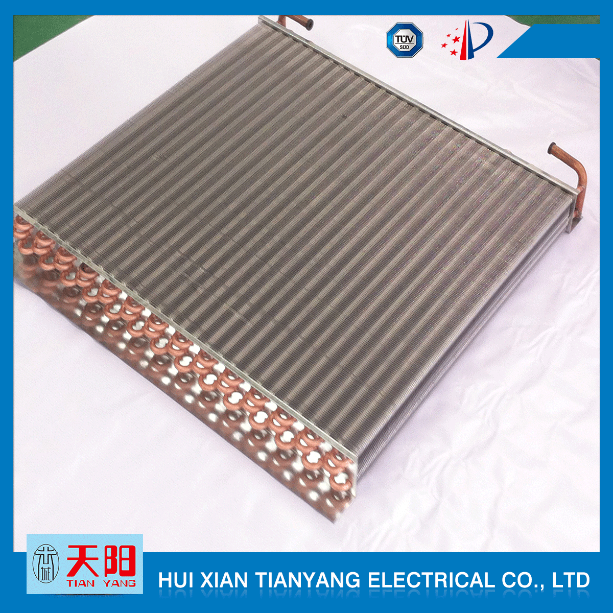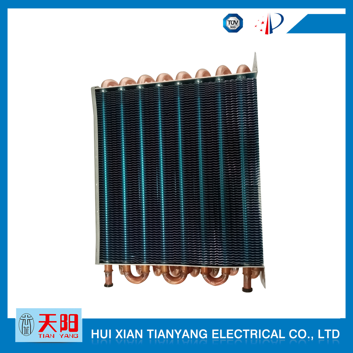 輝縣天陽電器有限責任公司位于肥沃的中原河南省輝縣市學院路中段工業(yè)集聚區(qū)興業(yè)園3號廠房,以制冷設備用冷凝器,蒸發(fā)器,熱交換器為主。主要材料為銅管鋁翅片,銅管銅翅片,鋁管鋁翅片。廣泛應用于冰箱冰柜,制冷設備,暖通設備,空調(diào),自動售貨機,冷干機,超市立風柜,冷藏車,烘干機等產(chǎn)品領域。  公司自1998年成立以來,始終堅持:“科技造就產(chǎn)業(yè)、質(zhì)量成就信譽、誠信鑄就輝煌”的質(zhì)量方針,從產(chǎn)品拓展上堅持“人無我有,人有我優(yōu),人優(yōu)我特的”經(jīng)營理念,25年來,從1998年開始供應河南冰熊集團下屬的冷柜廠,制冰機廠各種冷凝器;2003年之后,原冰熊集團的精英志士開始在全國各地發(fā)展,所到之處依托我公司供貨,以致于多家目前已具行業(yè)中佼佼者的公司,從而建立了如凱雪公司,兆邦公司、凌云公司、海寶公司、正雪公司、上海忠云、山東德萊維等幾十余家公司在草創(chuàng)時期的啟蒙供貨商,友好共贏長達十余年,成為我國制冷行業(yè)的供應商。以致在2015年初雙匯集團面向社會的招標書中指名要我公司冷凝器、蒸發(fā)器指定產(chǎn)品供應商